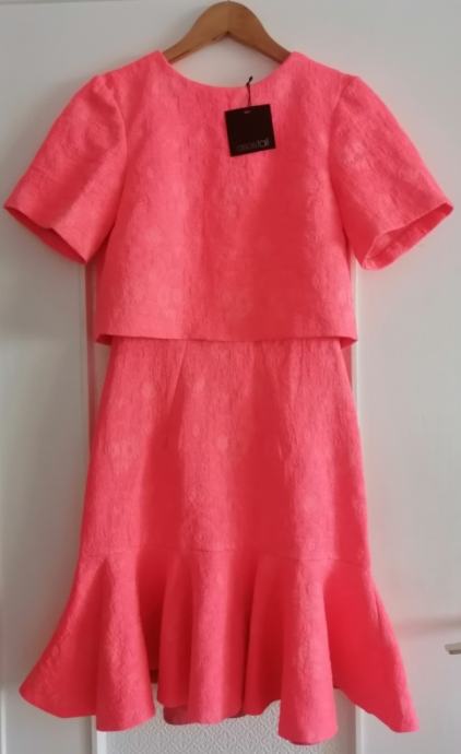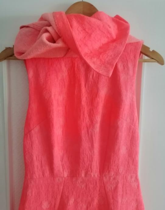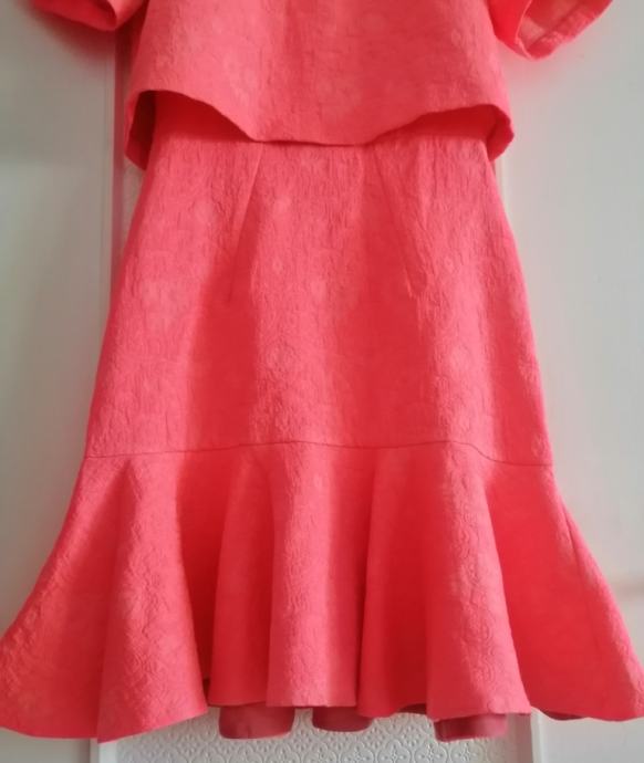 Svečana koraljna haljina s volanom