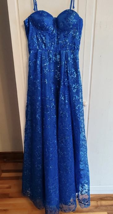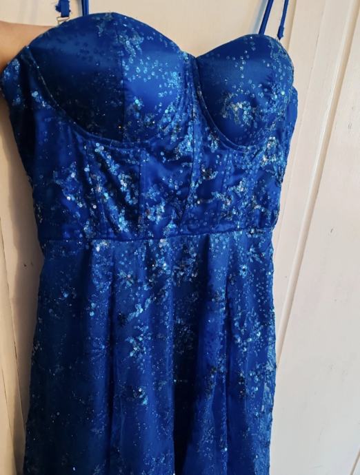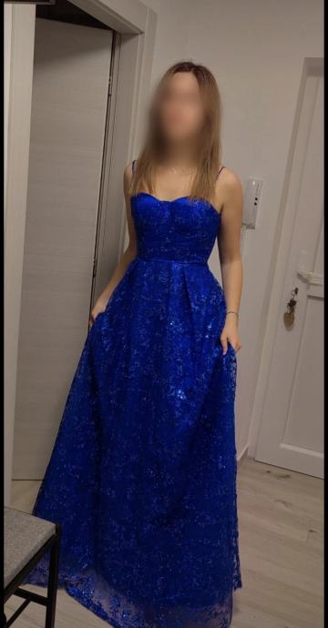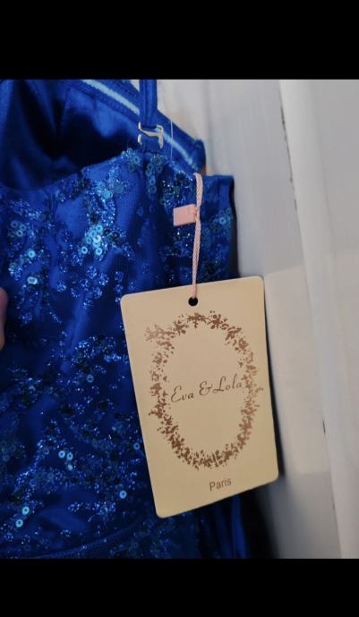 Haljina plaćena 120e. Nova s etiketom, nikad nošena, samo isprobana za sliku. Veličina L (manji model, po meni je M realna veličina), prekrasne kraljevsko plave boje. Djevojka na slici je visoka 1,71m.