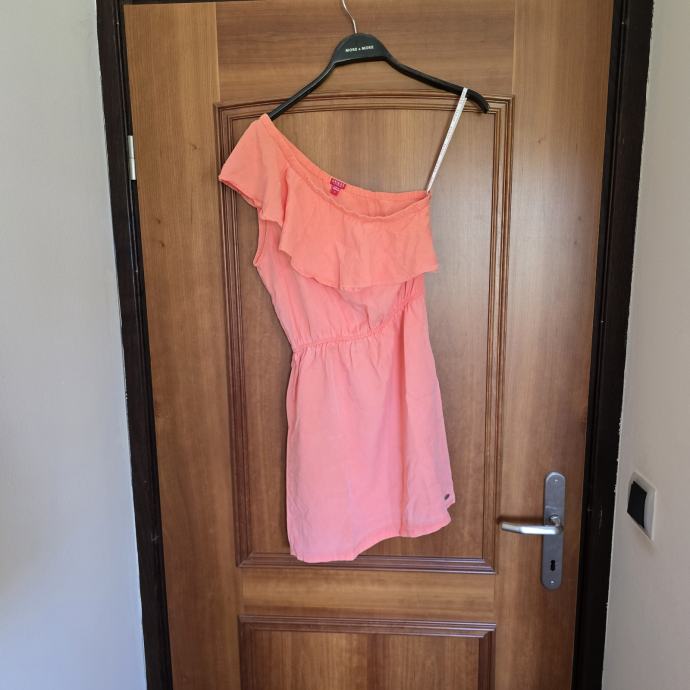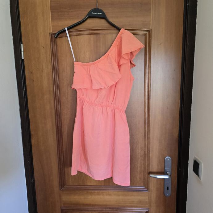 Koraljna haljina na jedno rame Guess, veličina S. Prsa 44cm, dužuna 83cm. Etiketu sam odrezala, ali rekla bi da je pamučna.