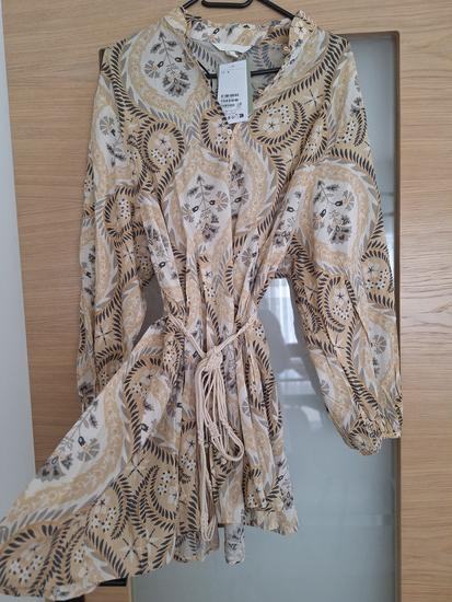 Nova s etiketom, h&m haljina s pripadajućim remenom na vezanje, prekrasan uzorak, naprijed kraća, iza dulja, za niže cure je haljina, a za više tunika, vel.M, realna