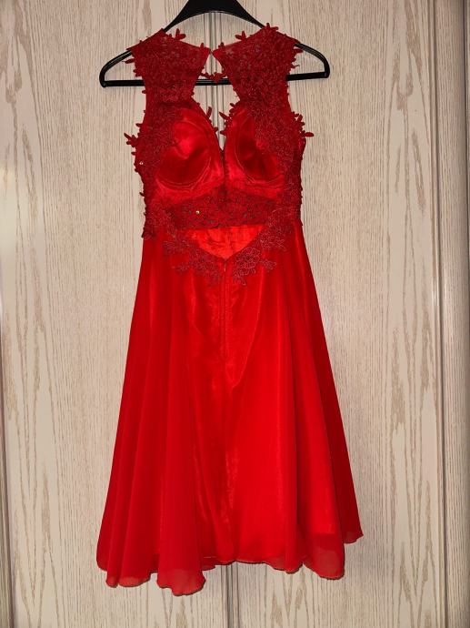 Ova predivna, elegantna i svecana haljina trazi novu vlasnicu. Velicina S, Ima otvorena leda, mali dekolte sa kosaricama