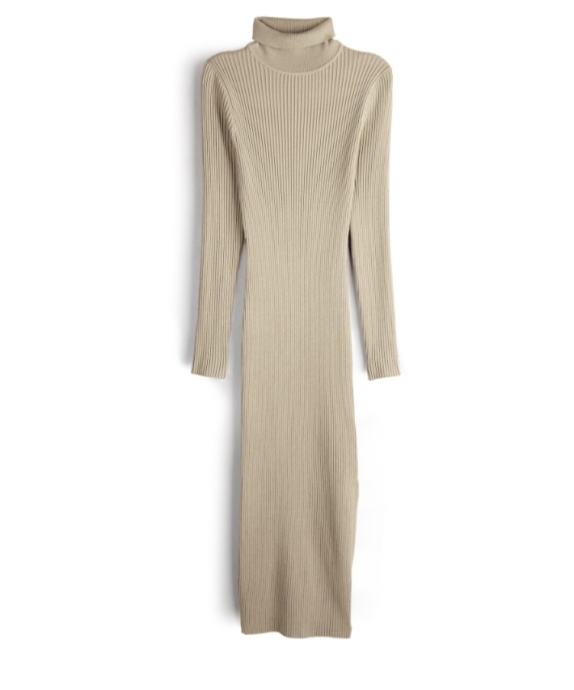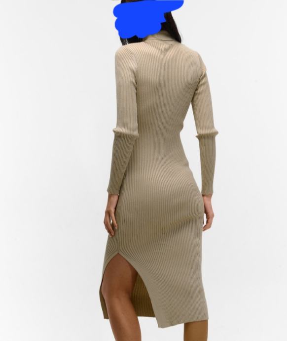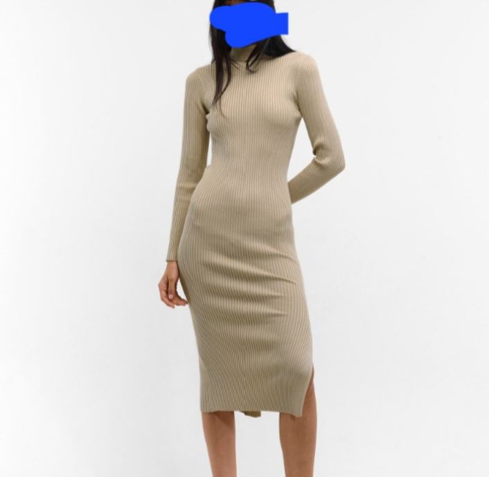Haljina bež, raztezljivi material, dođe uz tijelo.
