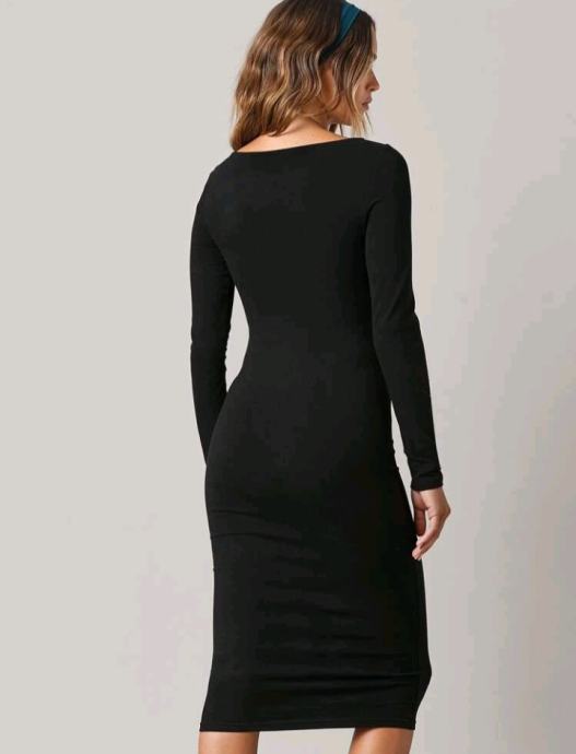 Haljina crna, broj 40, raztezljivi material, dođe uz tijelo.