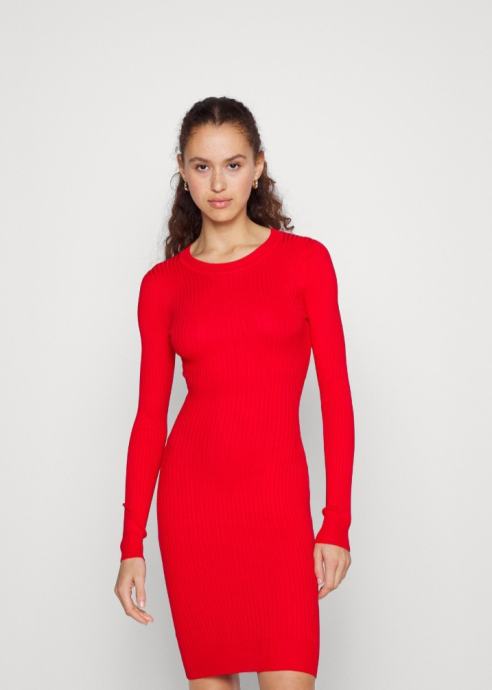 Haljina crvena, veličina L, raztezljivi material, dođe uz tijelo.