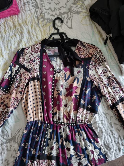 Sarena, ljepa,ocuvana. Dugi rukav,lastika tanka u struku, na bokovima malo duza..ugodan lagani materijal.Kupljena u Diademi.