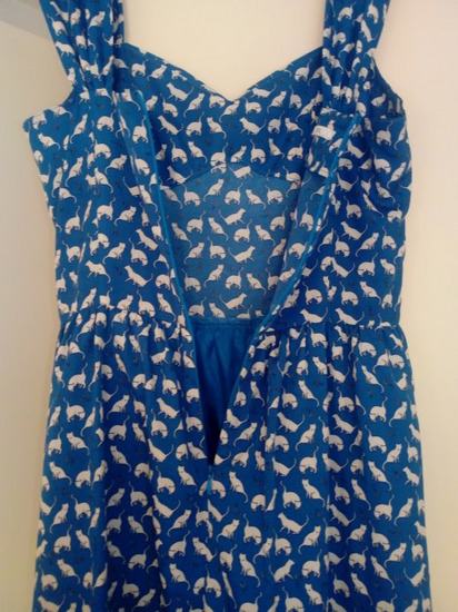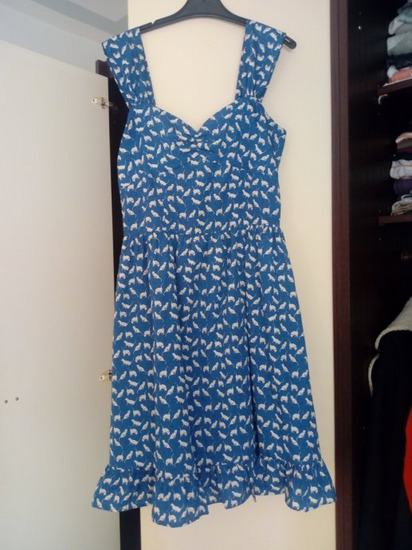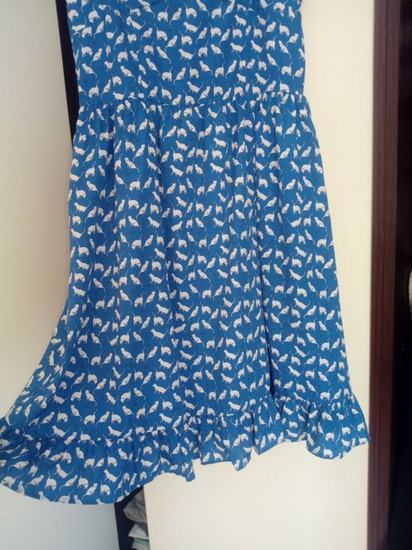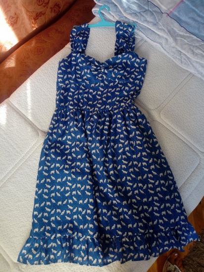 Haljina na mace, boja plava, postavljena, super stoji, nosena 2 puta, midi.