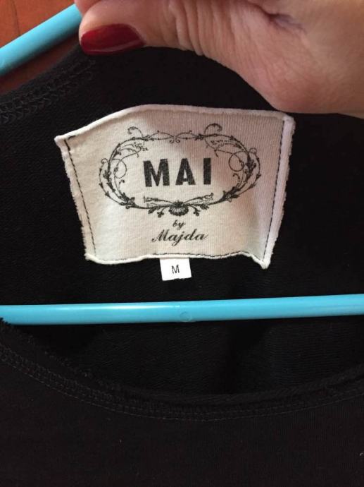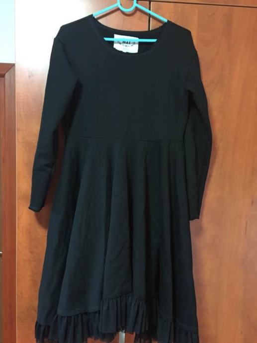Crna haljina sa rubom od tila,vel M,sirina u struku 38,duzina prednje strane 77,zadnje 87cm i sirina ramena od jednog do drugog kraja je 41 cm