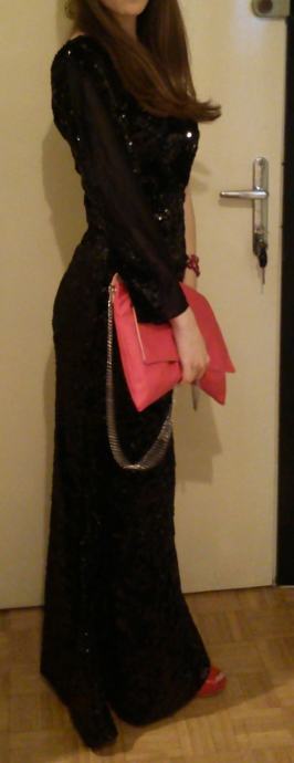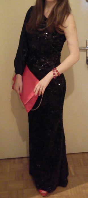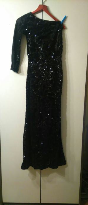 Prodajem haljinu rađenu po mjeri. Crna sa svjetlucavim detaljima. Desni rukav ima, lijevi ne. Jednom nošena.