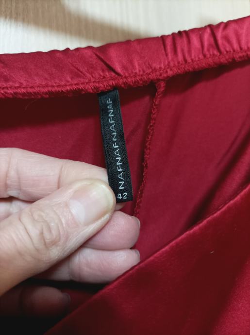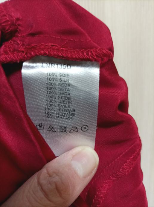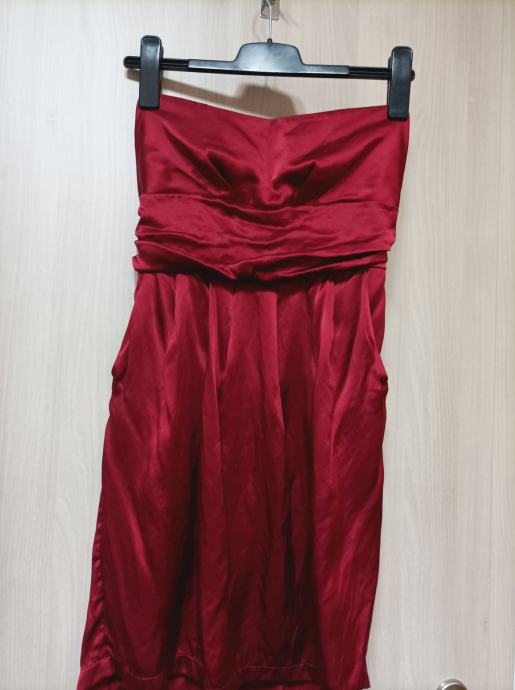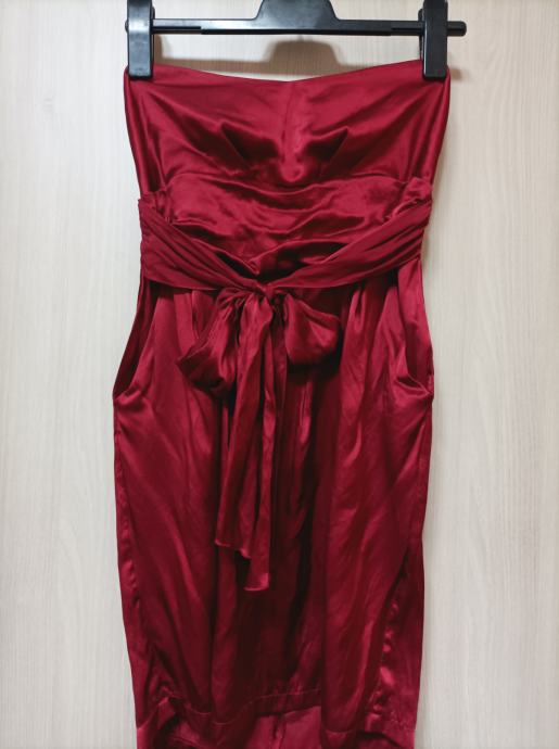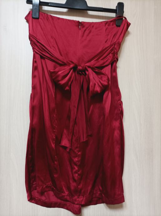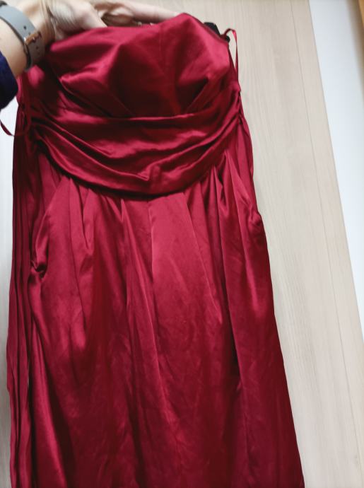 haljina od svile, bez naramenica, a s trakom na vezanje u struku, predivne tamnije crvene boje (kao ruže)