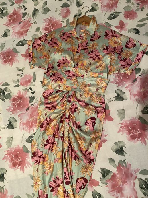 Haljina kupljena preko stranice modni kutak Clarissima, nosena na jednu svadbu i od tada stoji u ormaru. Lagani prozracni svileni materijal.