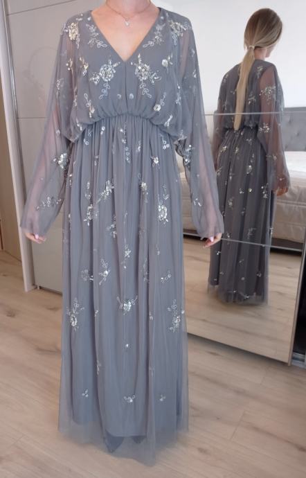 Mango dugo siva haljina. Jedan put nosena. Pase i osobama sa brojem M