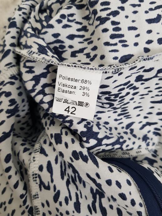 Nova haljina, samo isprobana, jako ugodna, ima elastina. Dobivena na poklon ali se ne vidim u njoj. Deklarirana je kao 42 ali po mjerama po meni više odgovara vel 40. Od pozada ciferšlus i mali raspor. Dužina 101 cm Struk 41 cm Prsa 49 cm Rukavi 30 cm Ramena 40 cm