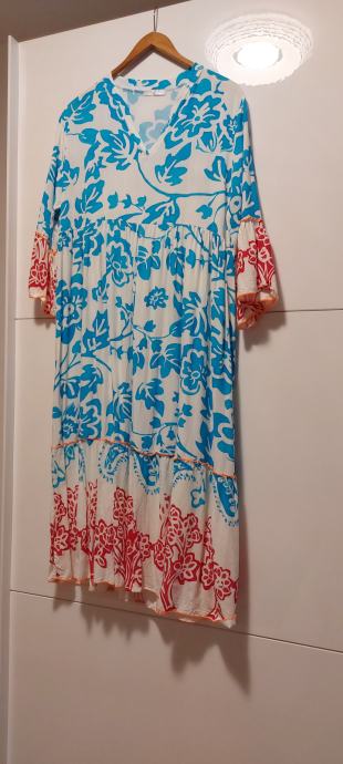 Nova haljina samo isprobana lagana,ugodna viskozna ide do xl(placena 32 eura)moze se nositi sa i bez pojasa