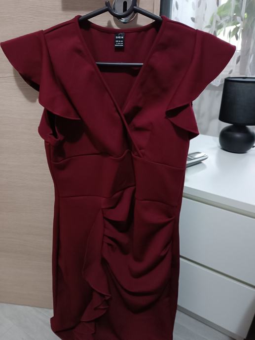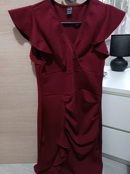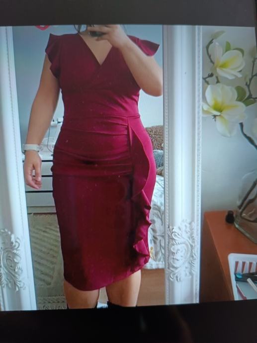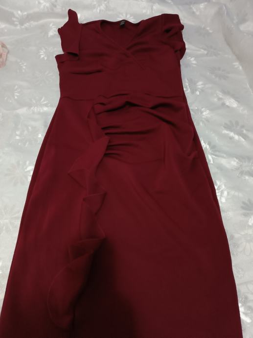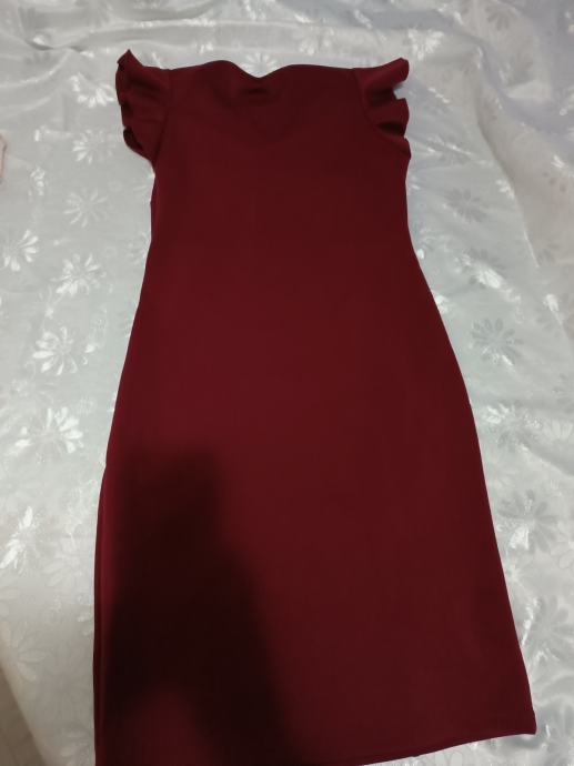 nova,samo isprobana, boja bordo jako lijepa, mjere su prsa 46 cm kukovi 48 cm dužina 102,rastezljiva je pa se prilagođava tijelu.