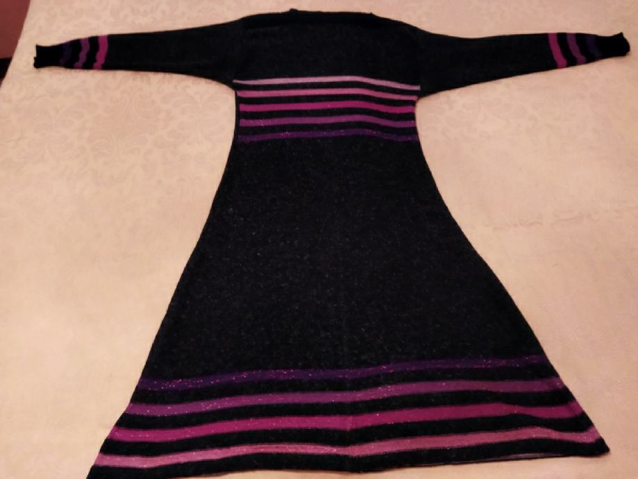 Obujam prsa 0,86 cm,rukav malo spušten,dužina haljine je 1,10 cm.