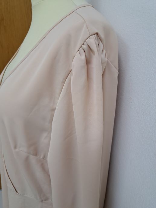 Prsa 110cm ,dužina 100cm,rukave 65cm ,ramena 50cm pufasta bež boja.