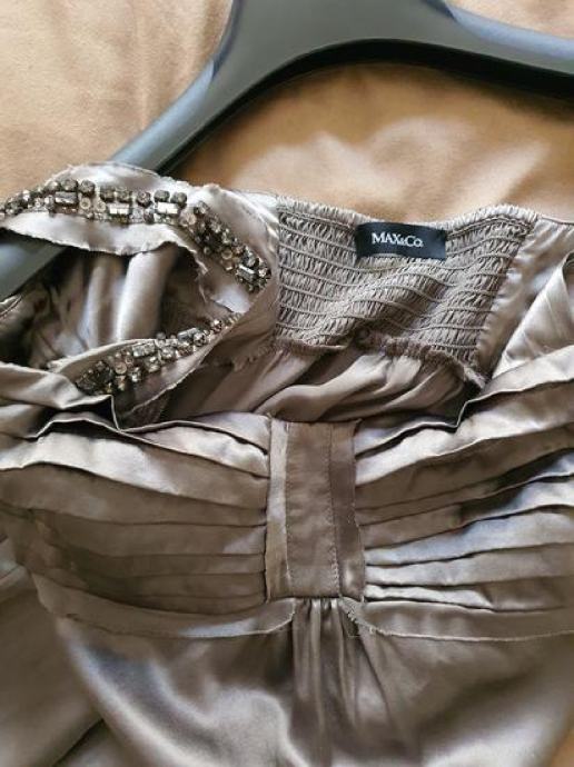 Prodajem novu, nenošenu, svilenu "haljinu/negliže ", Max&Co, retro stil, s plisiranim naramenicama, desa naramenicama ukrasena fliterima, sastav: svila, vel 38.