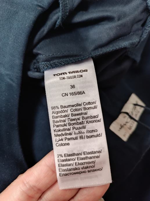 Tamno plave boje, sastav: 98% pamuk i 2% elastin.