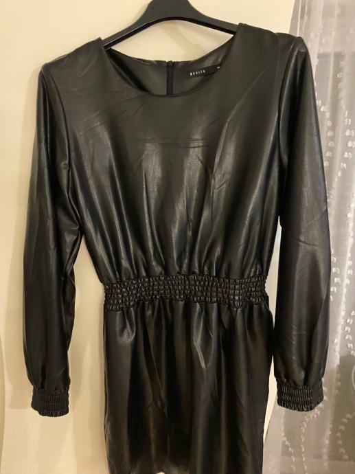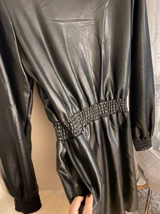 Haljina od umjetne kože. Gumica u struku i na rukavima. Džepovi sa strane. Nošena jednom. U cijenu uključena poštarina putem TISAK paketa.