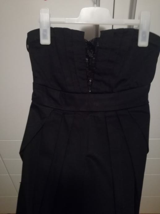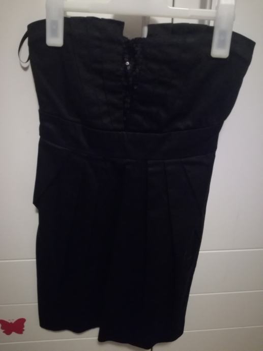 jednostavna, crna haljina za svecanije prigode, vel. 34 (xs), Ginatricot, 97%pamuk, 3%elastin, duzina 67cm, struk 31cm, decentni umetak kod dekoltea