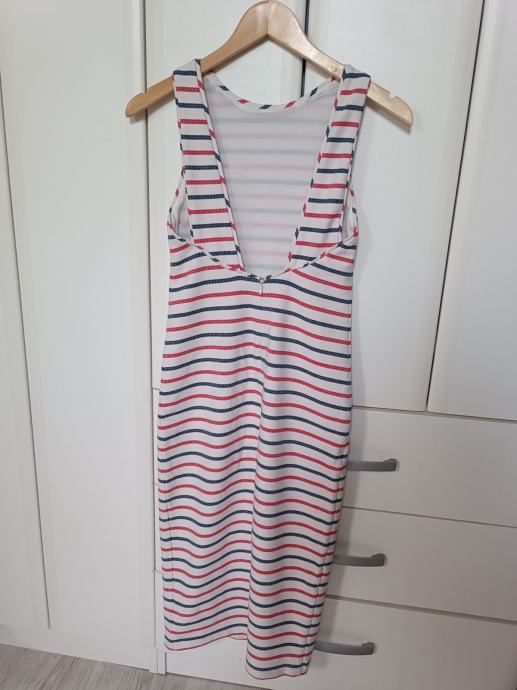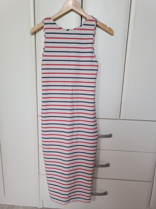 Prodajem prekrasnu haljinu veličine XS. Ima plavo, crveno bijele pruge, veći izrez na leđima, a materijal je nešto deblji, neproziran, ispod je i podstava.