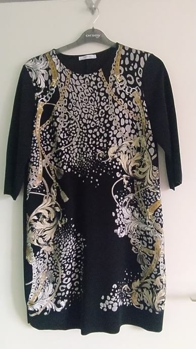 haljina Zara basic, zimska, deblji materijal, poliester, dužina prednja strana 82 cm, stražnja strana 87 cm, rukavi 3/4.