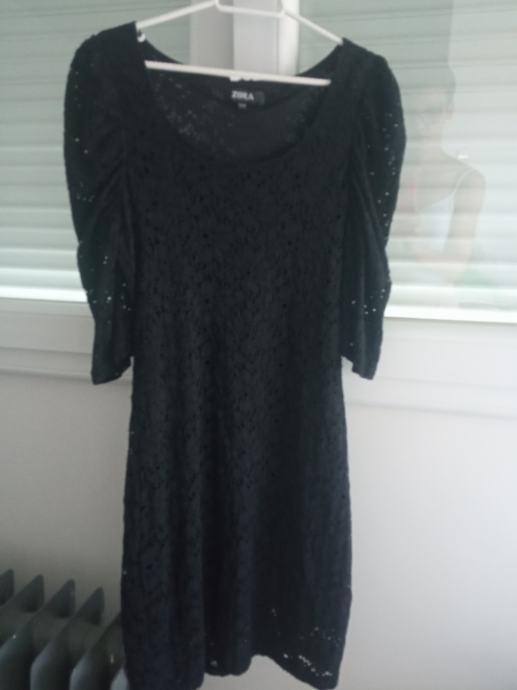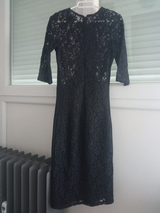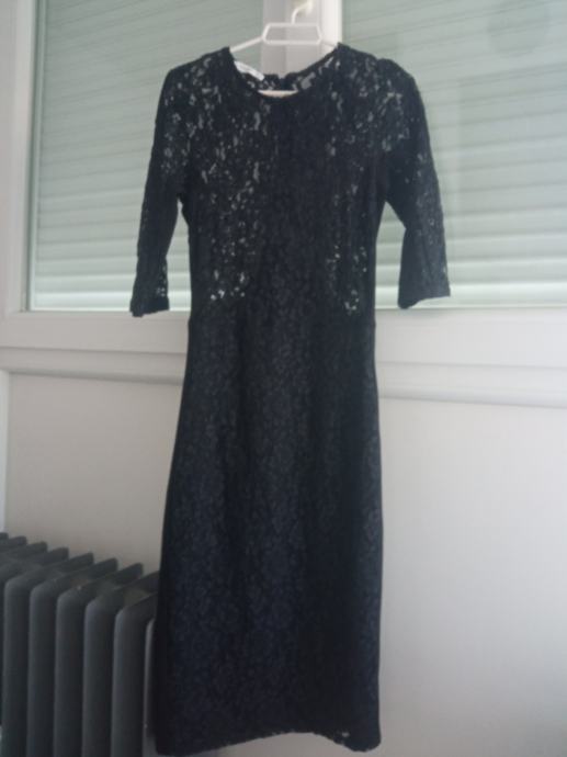 Crnu usku čipkanu haljinu dužine do ispod koljena jednom nošena 3/4 rukavi vel. xs, kupljena u Mangu ( 15 eur )