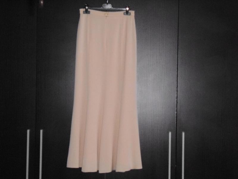 Duga uska suknja 62% viskoza, 28% acetat, podstavljena, krojena iz 7 dijelova (3 na prednjici, 4 na stražnjem dijelu). Prednji dio je kraći, (radi lakšeg hodanja) a stražnji je duži, a prema dnu se lagano širi.