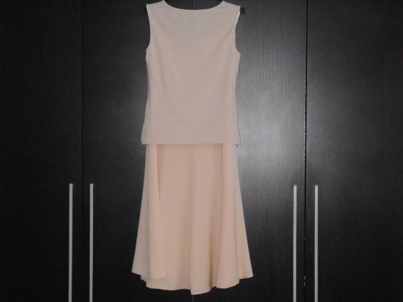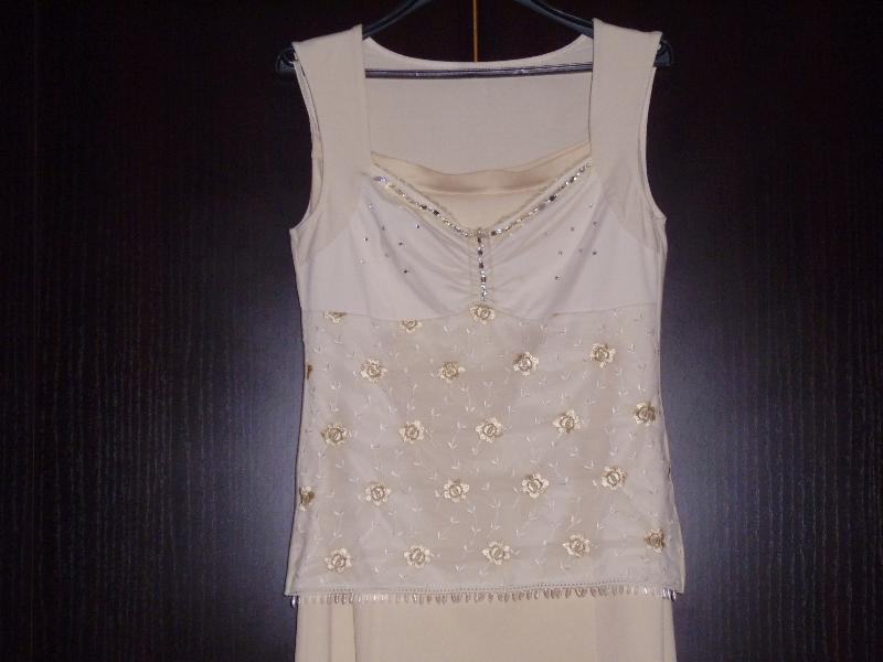 Ženski svečani komplet "Heine" vel. 36, boja bež ,bez oštećenja, čist, kupljeno u Njemačkoj. Topić 90% viskoza, 10% elastin, ukrašen izvezenim tilom i cirkonima na prednjem dijelu, rastezljiv.