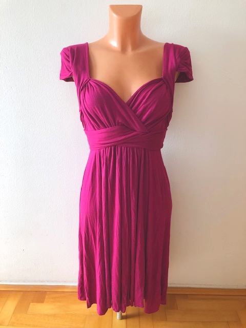 JOYFOLIE pre-predivna haljina US vel.S (vel.36/38), novo s etiketom. Prelijepa haljinica napravljena od najfinijeg mekanog rayona sa malo elastina, prelijepo dekoltirana, od struka na niže se širi i dodatno se strukira sa vezanjem, boja ciklame, jako lijepo pada. Pre-predivna i vrlo atraktivna haljinica uživo.