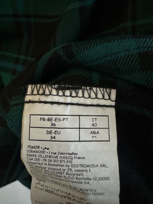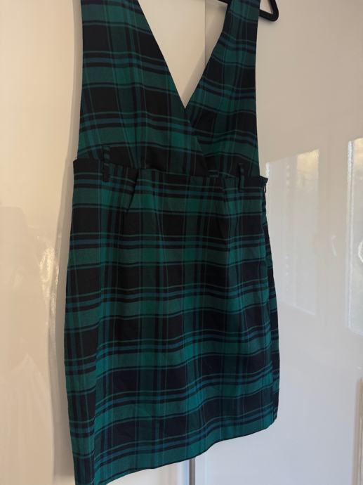 Prodajem kariranu haljinica marke Pimkie Collection u zelenoj boji s tamno plavim/crnim uzorkom. Haljinica je bez rukava, s dubokim V-izrezom i naglašenim strukom, a dužina pada iznad koljena. Veličina je 36.