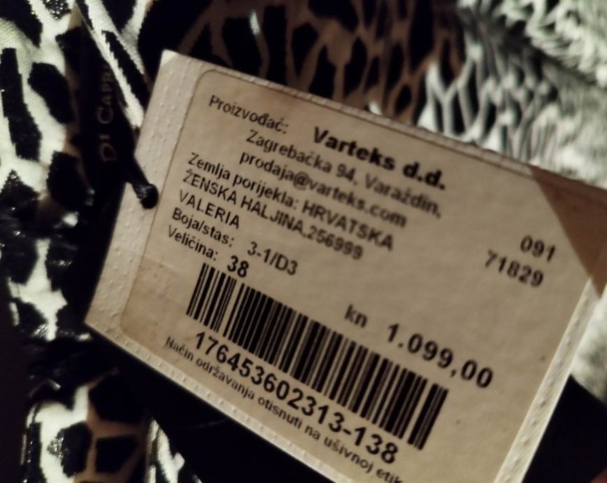 Nova, ne nošena haljina Di Caprio by Varteks crno bijele boje, zanimljivog dizajna, ima dva džepića sa lijeve i desne strane, svečana haljinica. Veličina 38. Plaćena 146€.