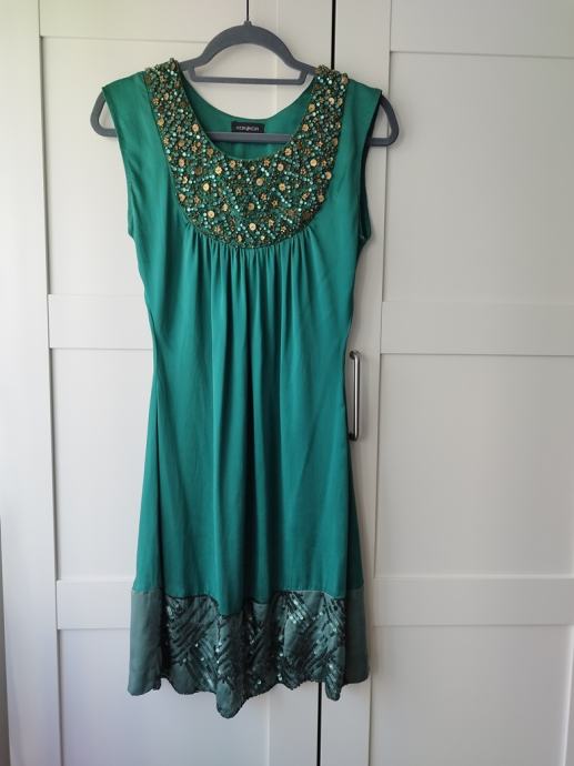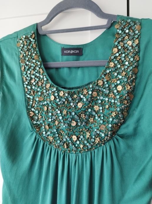 Kor@Kor 100% svilena haljina s ručno izvezenim zlatnim, plavim, zelenim, crnim, smeđim... perlicama.