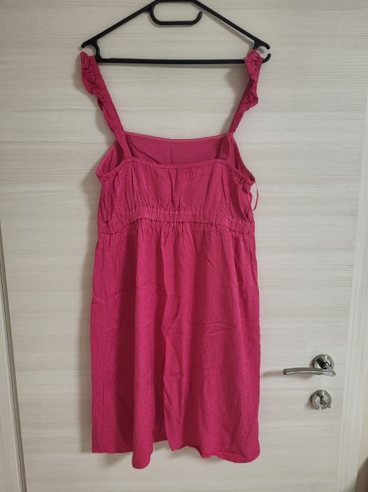 Prekrasna haljina u živoj fuksija boji s detaljima nabora. Haljina ima regulirajuće bretele, elastičnu strukturu u području grudi i romantične nabore koji stvaraju volumen. Kroj je udoban i laskav za figuru. Veličina L.