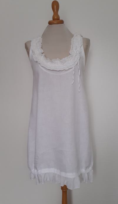 La Fee Maraboutee romantična boho lanena ljetna haljina tunika bijele boje.