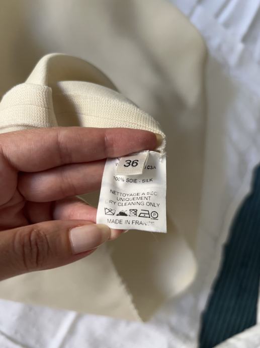 Vec sigurno znate da sam kolekcionar Lanvina, pogotovo iz Elbaz faze. Ovaj beige komad iznimno zanimljivog materijala je zaista wow. Nosila sam ga,pazila a i dalje je čudo. Cijena je preporucena za preowned. Zamjene ne!
