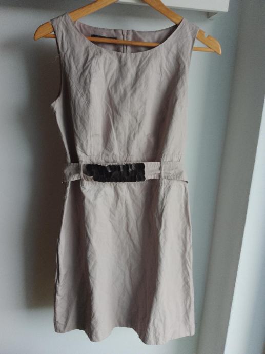 Ljetna midi haljina do koljena bez rukava beige boje . Laganiji materijal, samo što se dosta gužva, a meni se ne da peglati uz malu djecu. Haljina je bez oštećenja, kao nova . Ima remen koji se može odvojiti . Veličina S / 36 . 3 eura +pt