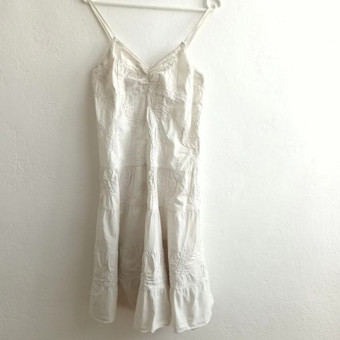 Ljetna bijela haljina izvezena 36 dekoltirana