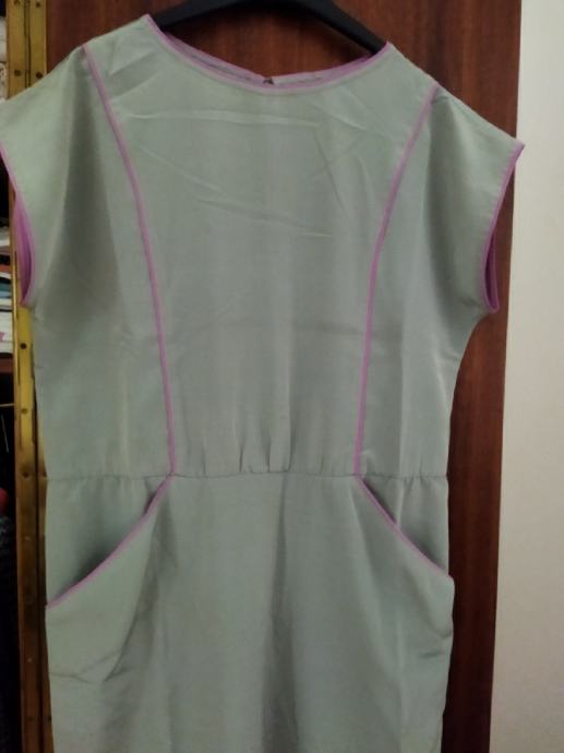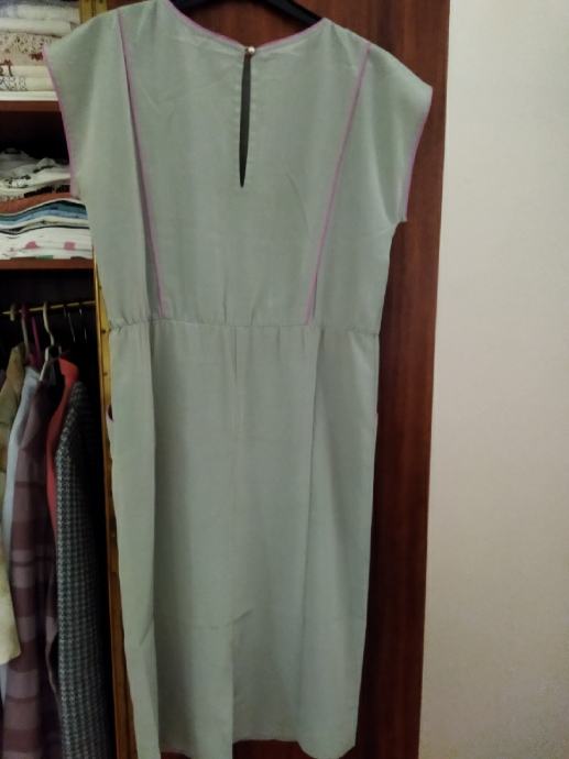 Originalna svijetlo siva haljina s rozim obrubima,urezane džepove,u struku lagana gumica,vel.38