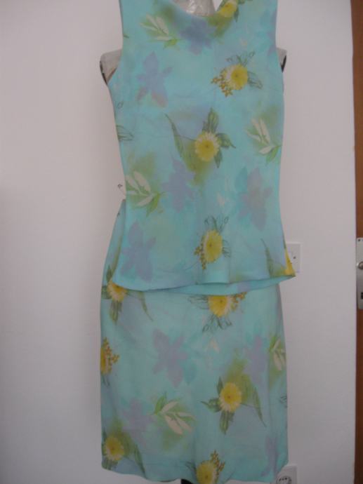2.dvodjelna haljinica, tirkizni muslin s cvjetnim uzorkom, vel.34,