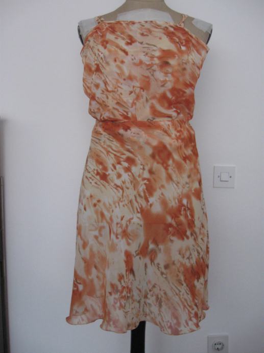 1.dvodjelna haljinica smeđe-bež, gornji dio s bretelama, svileni triko,vel.34,