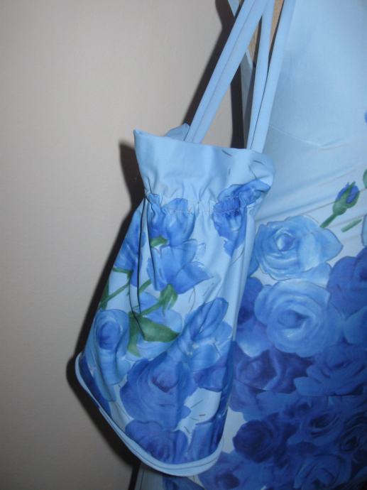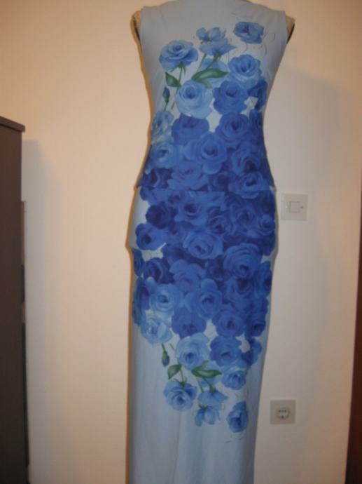 3. duga dvodjelna haljina od muslina sa svjetlucavim nitima, suknja ima volan, a gornji dio ukrasni remen s kopčom, vel.38, cijena 15 eura. 4.Plava sa cvjetnim uzorkom duga, dvodjelna od svilenkastog elastičnog materijala. Uz nju torbica od istog materijala. Vel.34, cijena 12 eura.