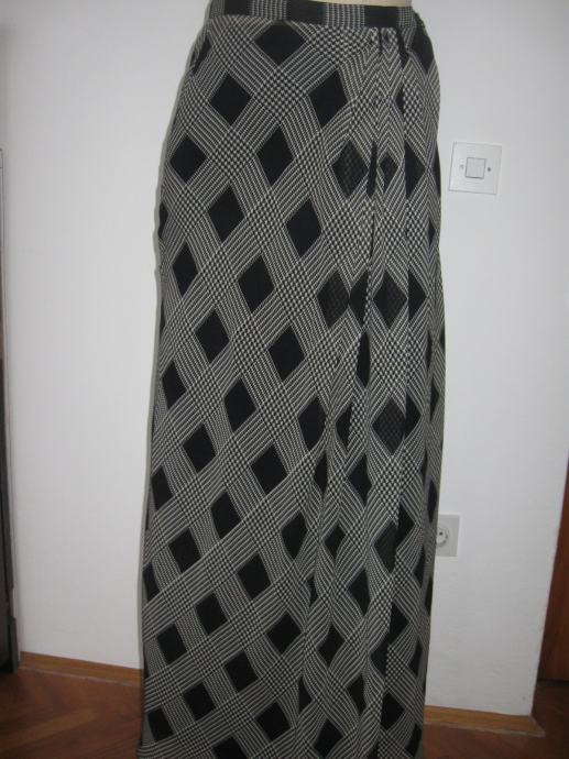 5. crno-bijelo karirani muslin, duga suknja, sa strane nekoliko "faldi". Vel.36, cijena 30 eura. Uz nju se može dobiti i isti materijal ako se želi top, bluza ili marama, zajedno s materijalom 30 eura.
