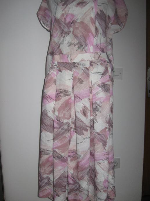 6. Lila-bež dvodjelna haljina za visoke i vitke osobe od tankog kašmira, suknja sa "faldama", vel.36, dužina suknje 64 cm. cijena 12 eura.