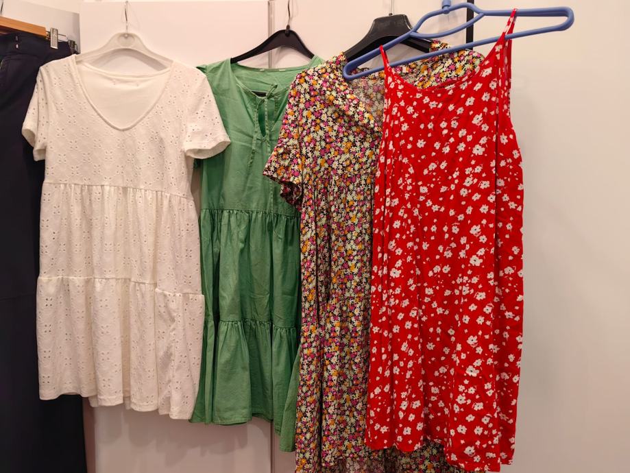 LOT nove, ljetne iznad koljena haljinice, nikad nosene, zbog kroja u A moze i na XS i na S. LOT 13 eur