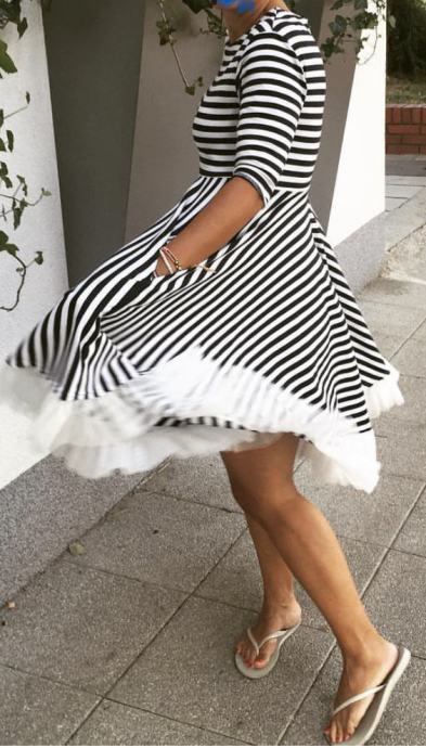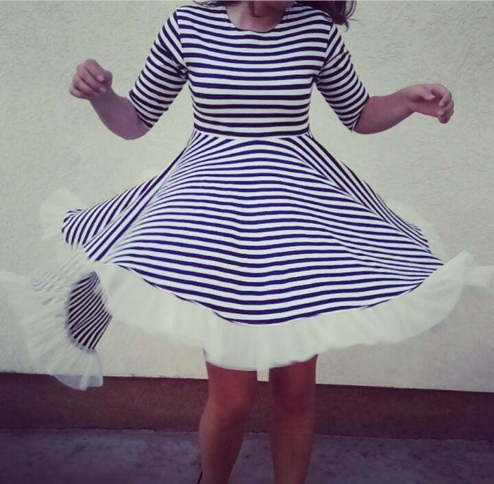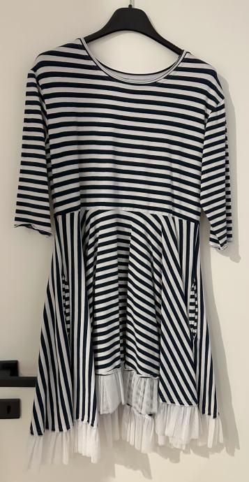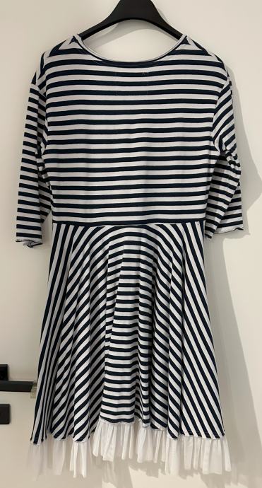 Prodajem Mai by Majda Kiara haljinu na tamno plave i bijele pruge, s bijelim tilom na dnu, Rukavi su 3/4. Haljina je napravljena od tanjeg pamuka. Veličina je XS, no dosta je široka tako da ju komotno mogu nositi i osobe koje nose S veličinu. Haljina je obučena svega par puta, u izvrsnom je stanju, bez vidljivih tragova nošenja.
