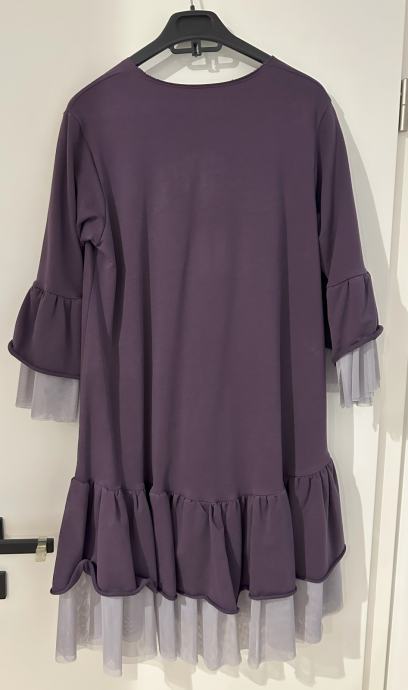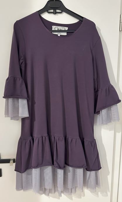 Prodajem Mai by Majda Marla tamno ljubičastu haljinu sa sivkastim tilom. Haljina je napravljena od mekanog debljeg pamuka. Rukavi su 3/4. Veličina je XS, no dosta je široka tako da ju komotno mogu nositi i osobe koje nose S ili M veličinu. Haljina je obučena svega par puta, u izvrsnom je stanju, bez vidljivih tragova nošenja.