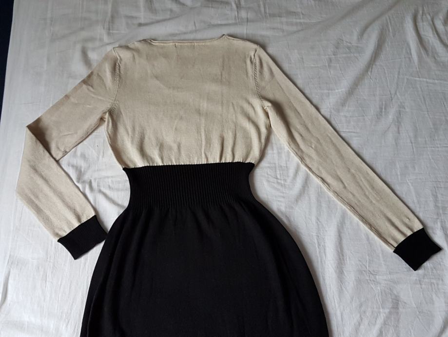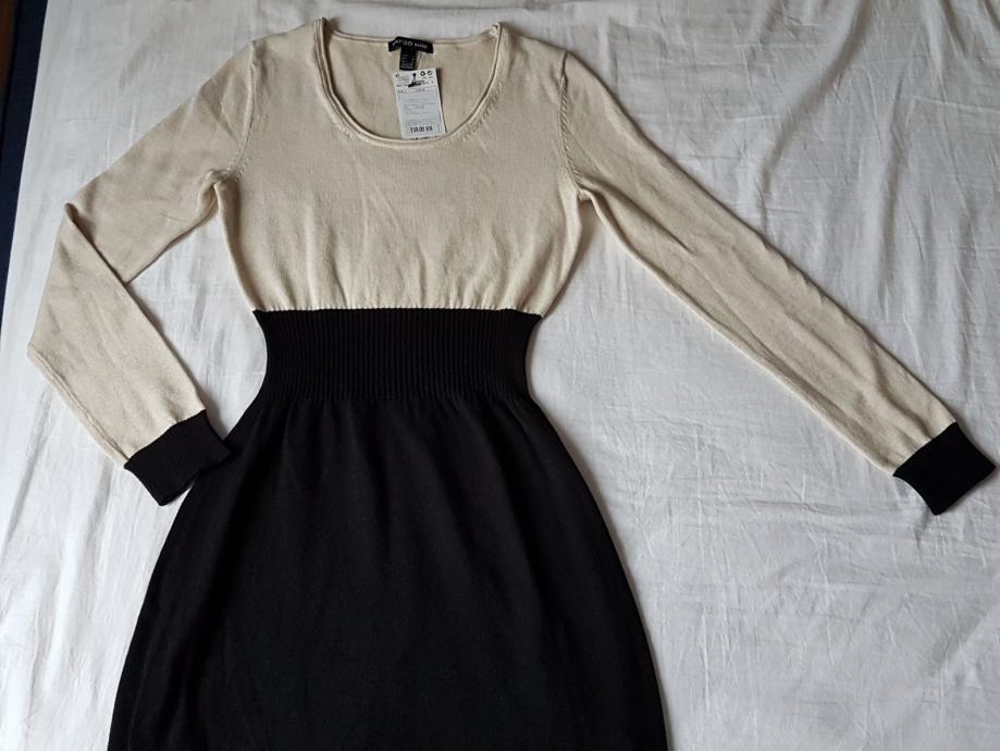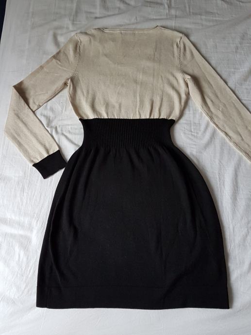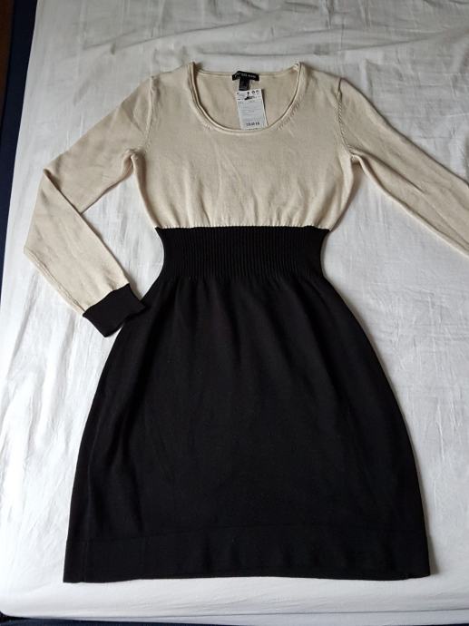 Nova i nikada nošena Mango haljina, na njoj je još etiketa. Haljina je malo deblja, za zimski period. Uska uz tijelo, dosta se rasteže i lijepo prati liniju tijela. Dužine iznad koljena. Kombinacija bež i crne boje. Veličina L.Plaćena 160 kn, prodajem za 120kn.