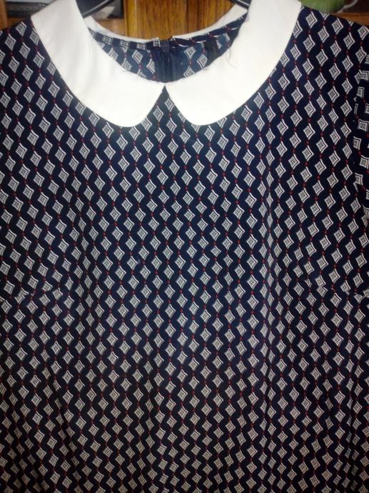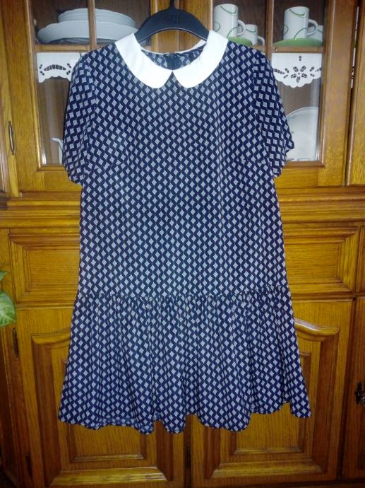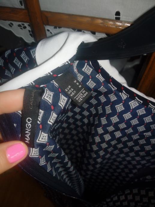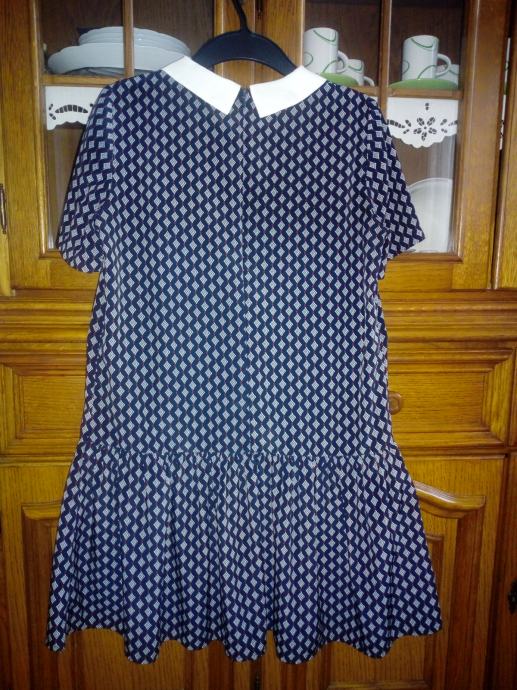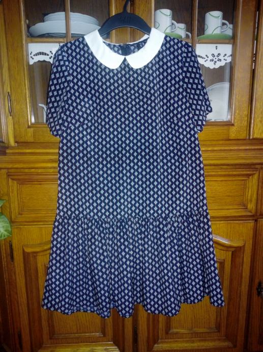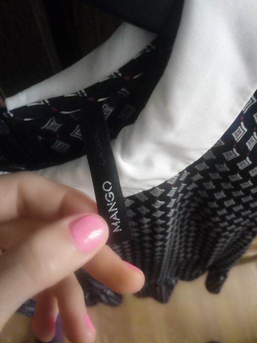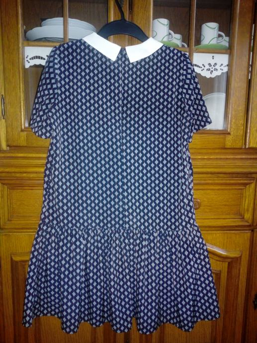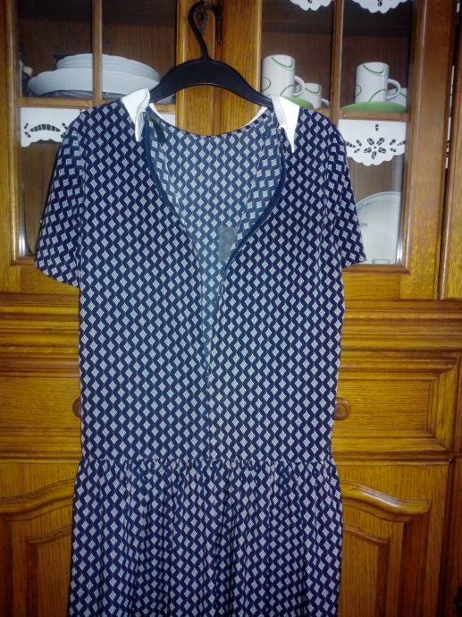 Mango haljina na volan, boje tamno plava, bijela i crvena, ima kragnu, veličina S, malo nosena, očuvana, super stoji, straga se rože.