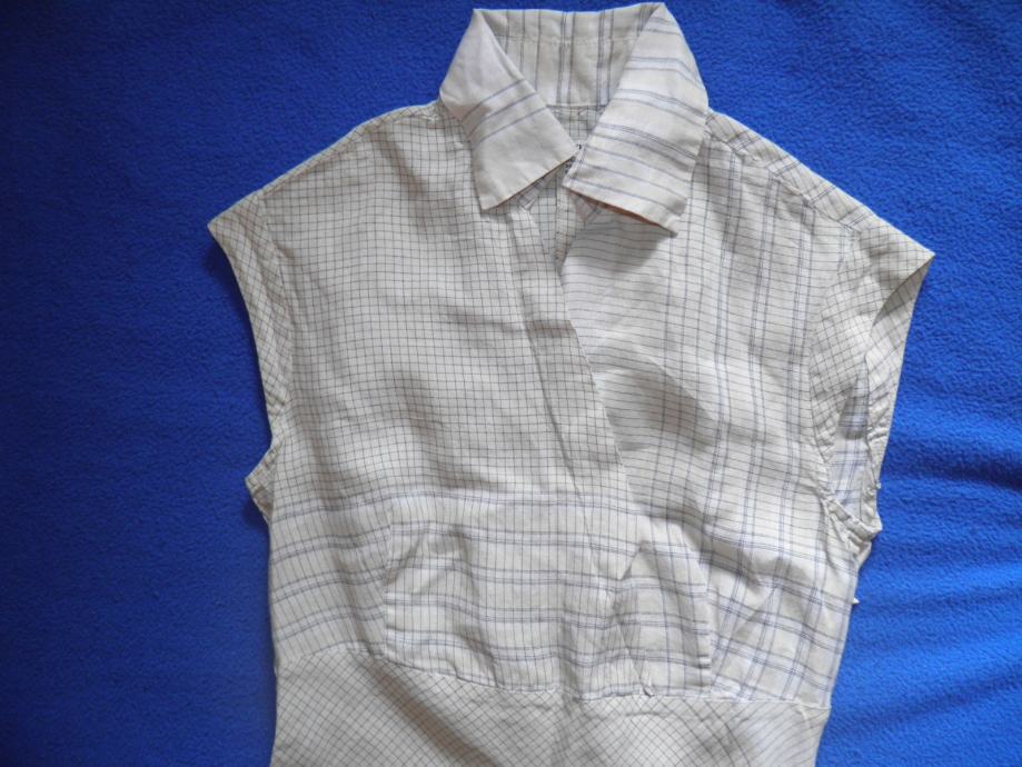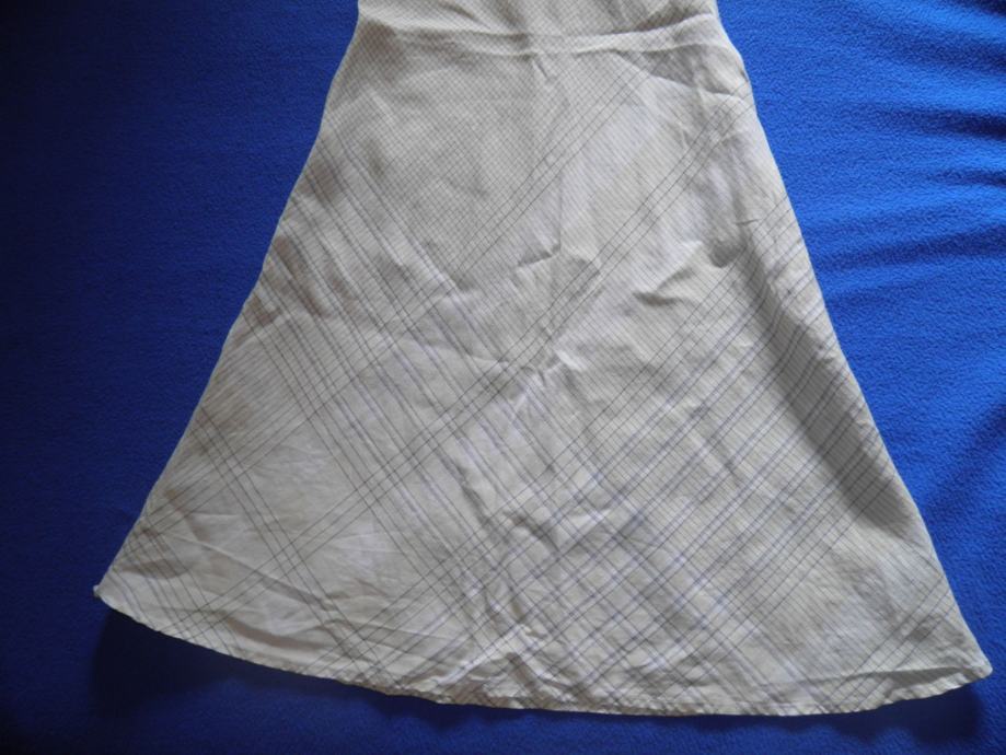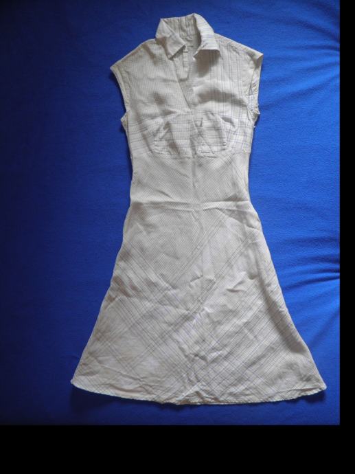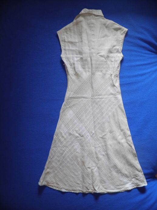 U ODLIČNOM STANJU, ZANIMLJIVOG DIZAJNA NA PRUGE I KOCKICE, ŠIRE I UŽE. KOPČANJE NA CIF JE SA STRANE. BOJE SU BIJELO I KREM. PIŠE VEL. M ALI PO MOJOJ PROCJENI JE S. PRSA 39, STRUK 35, DUŽINA 108 CM. 100% RAMIO.